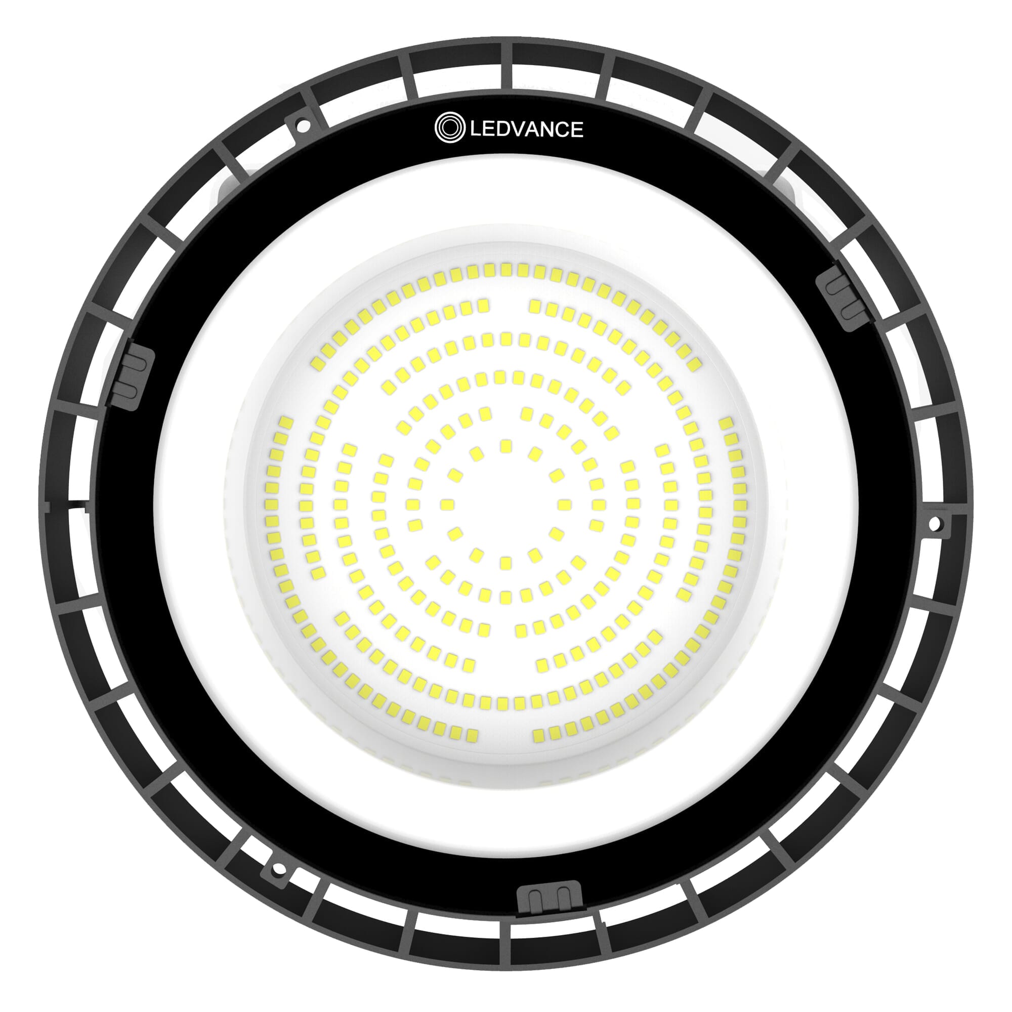Luminaria para uso interior y exterior para suspender. Ideal para iluminar grandes áreas industriales, centros de logística, fábricas, etc. Proporciona una correcta distribución de luz. Fabricado con aluminio y acabado en color negro mate. Luminaria con driver incorporado.