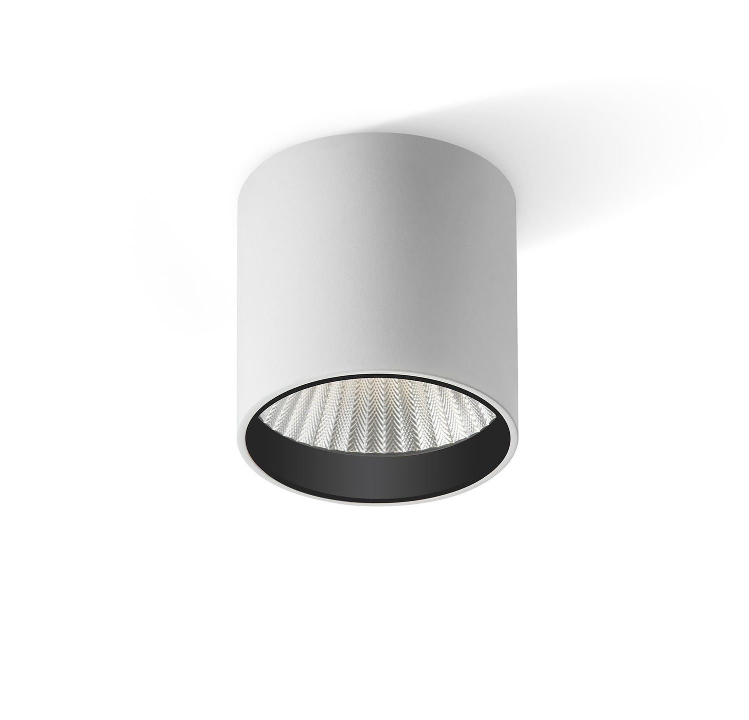 Luminaria de adosar con estructura de aluminio y acabado de color blanco.