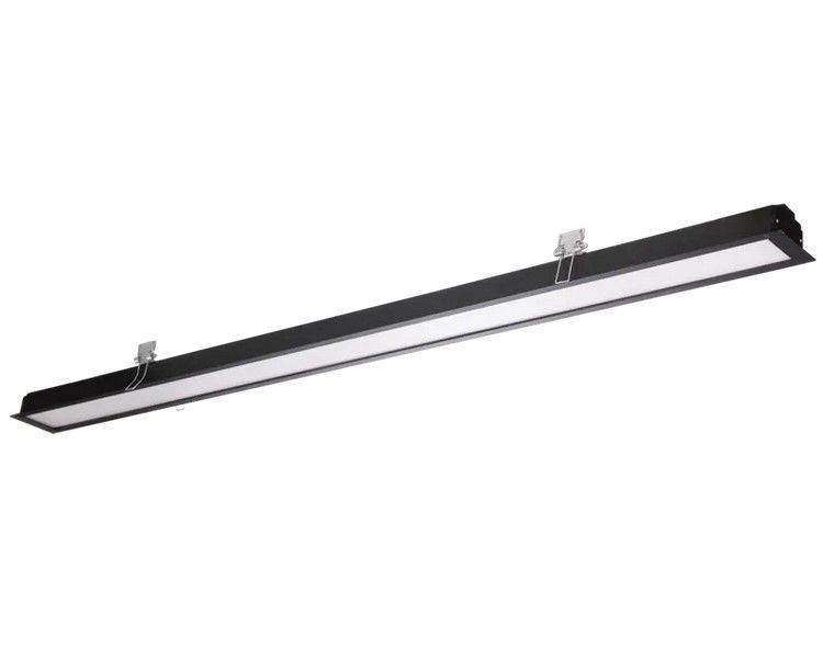 Luminaria lineal de empotrar con estructura de aluminio y acabado en color blanco.