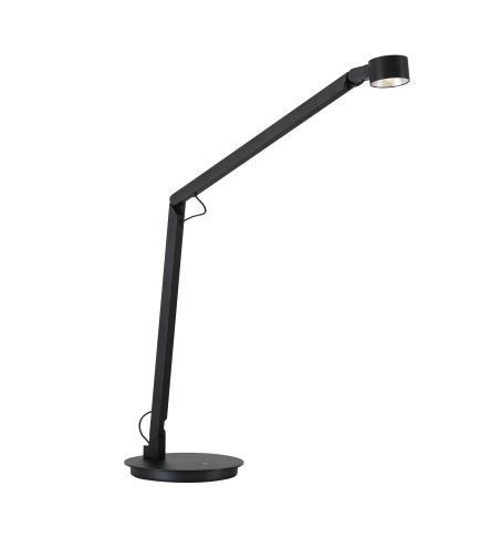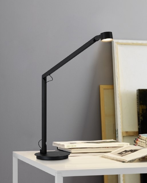 Luminaria de mesa con estructura de aluminio y acabado en color negro.