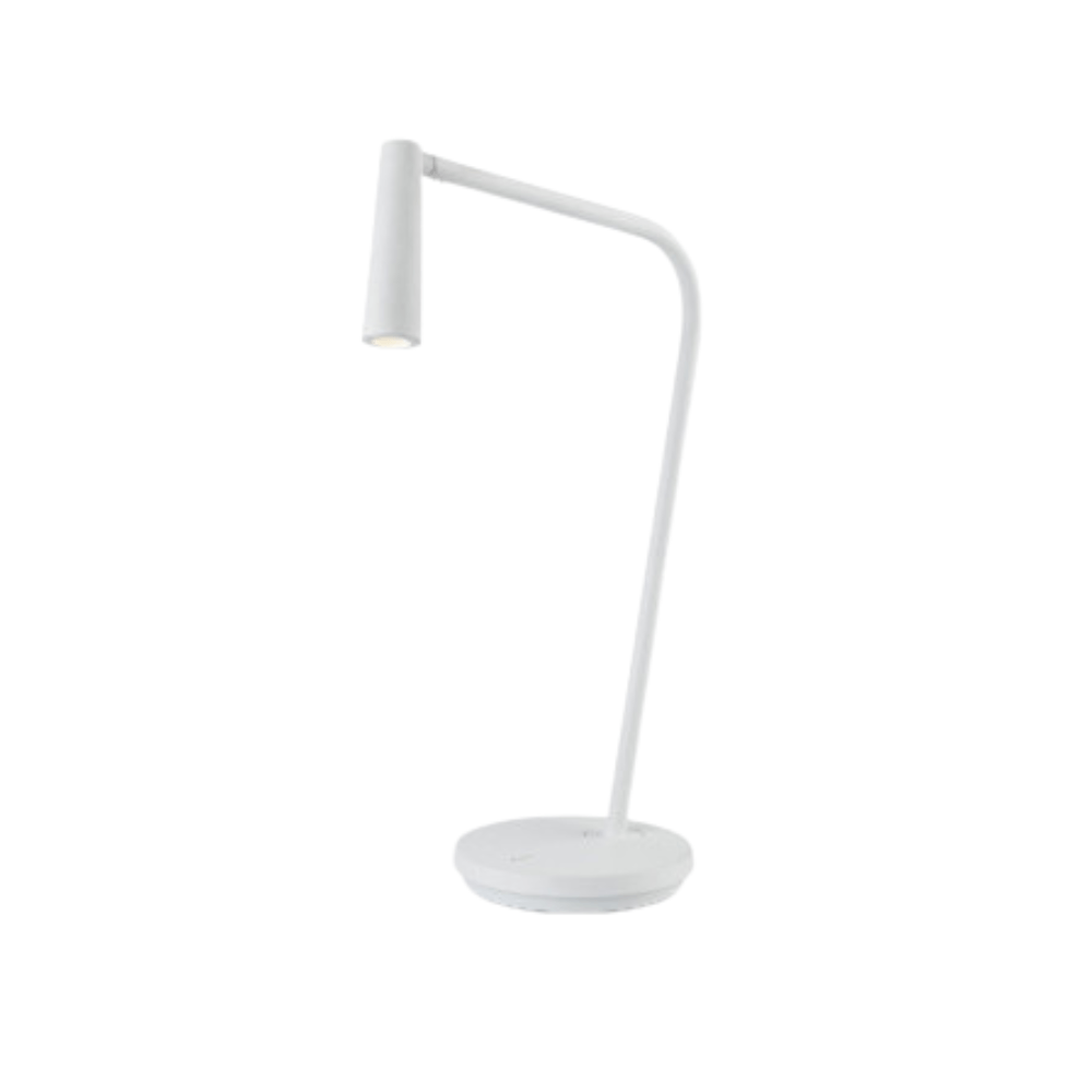 Luminaria de mesa con estructura de aluminio y acabado en blanco que permite la rotación del cabezal 355º.