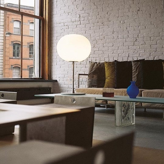 La luminaria dota de elegancia, calidez y delicadeza cada espacio. Glo-Ball está compuesto por un difusor de cristal soplado a mano y una virola con rosca de aluminio, que emite una luz difusa que permite iluminar de una forma homogénea.