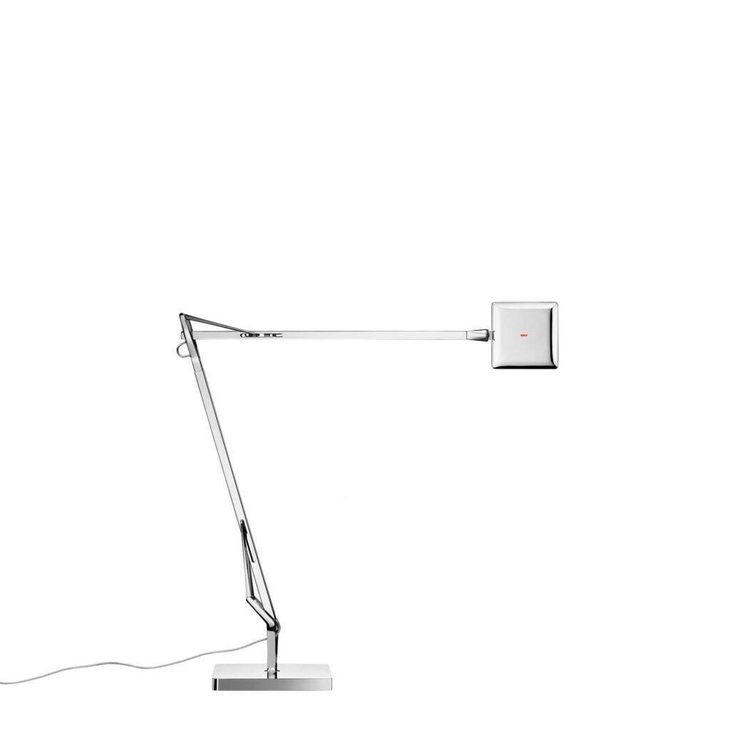 Luminaria de mesa orientable con luz directa. Cuerpo de aluminio cromado, con cabezal, articulaciones y ganchos fundidos y brazos extruidos. Difusor de policarbonato fotograbado y metalizado en el perímetro. Fuente luminosa con tecnología Edge Lighting. Interruptor óptico ubicado en el cabezal que garantiza las funciones de regulación de la intensidad en 3 pasos y regulación de la temperatura de color a 2700K o 3200K. Cable eléctrico con una longitud útil de 150 cm. Suministro eléctrico en clavija con enchufes intercambiables.