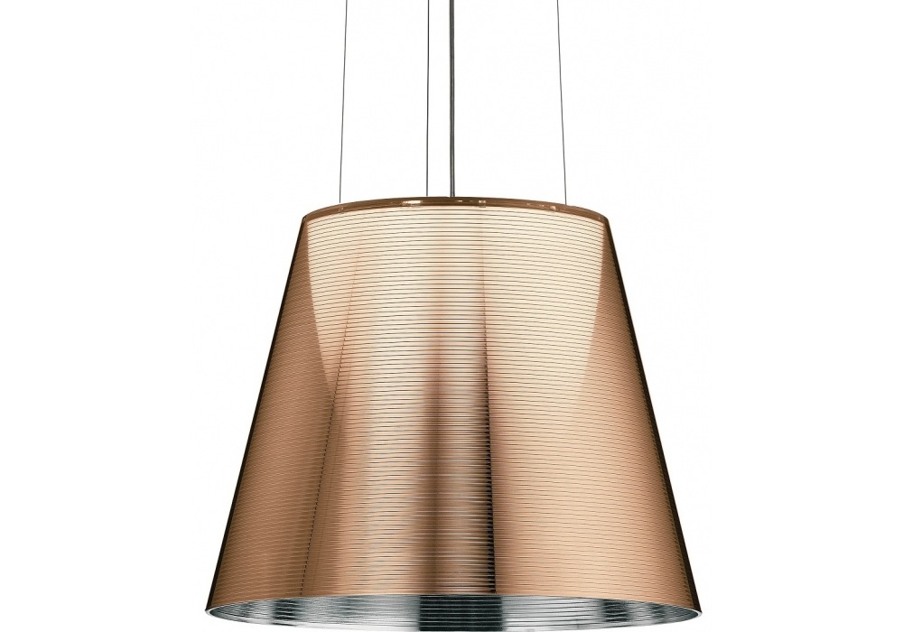 Lámpara colgante de luz difusa. Difusor interior en PC (policarbonato) con acabado blanco mate. Los difusores exteriores están disponibles en bronce en la superficie interior utilizando un proceso de aluminizado en vacío. Trae cables de suspensión en acero inoxidable, largo útil 4000 mm. Rosetón cubridor blanco.