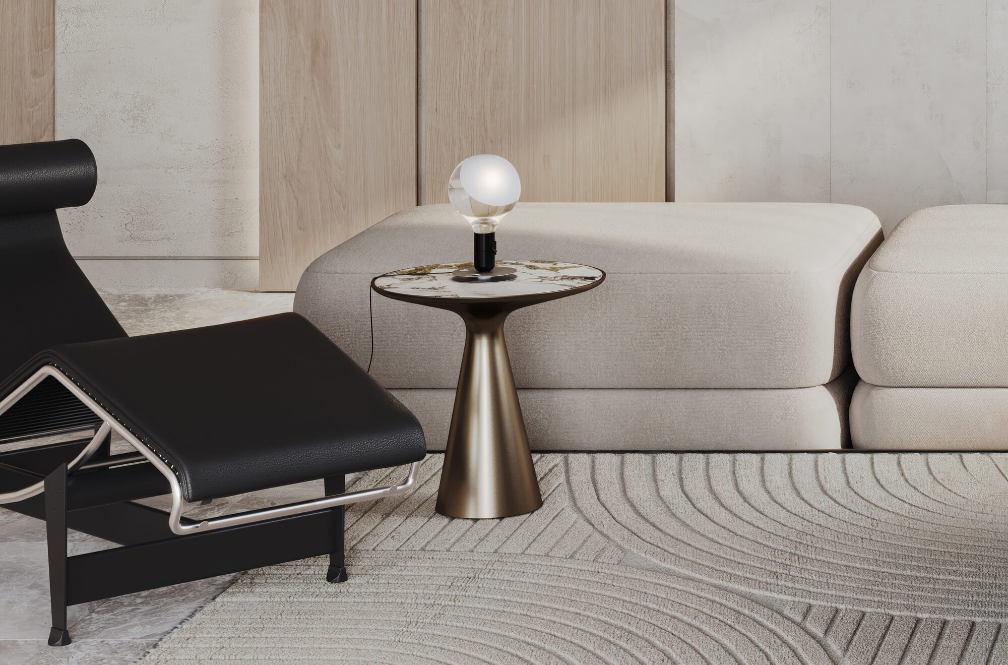 La luminaria de mesa Lampadina es una obra maestra del diseñador Achille Castiglioni, diseñada en 1972.