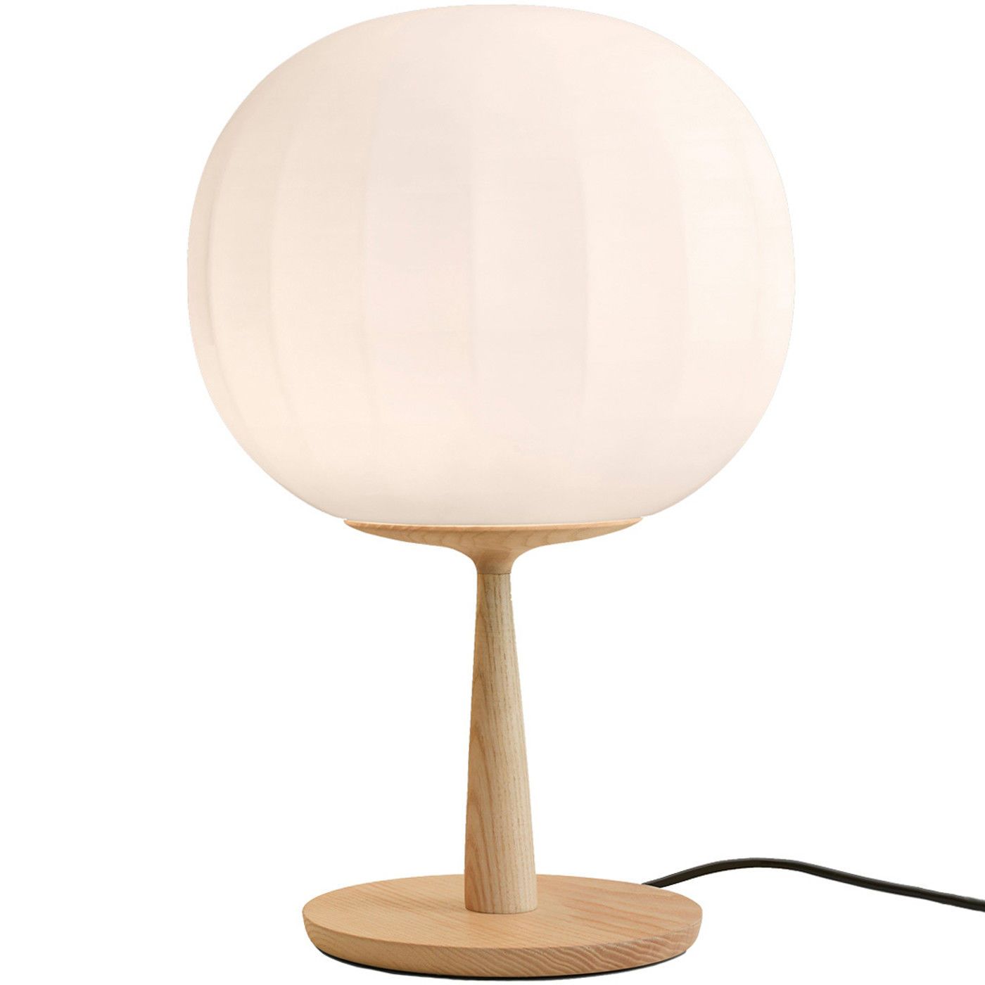 Ligereza natural: esto es lo que transmite la lámpara de mesa Lita con una base decorativa de madera de fresno y pantalla en blanco opalino fabricada de vidrio soplado. Lita crea una atmósfera acogedora con una luz sumamente elegante.