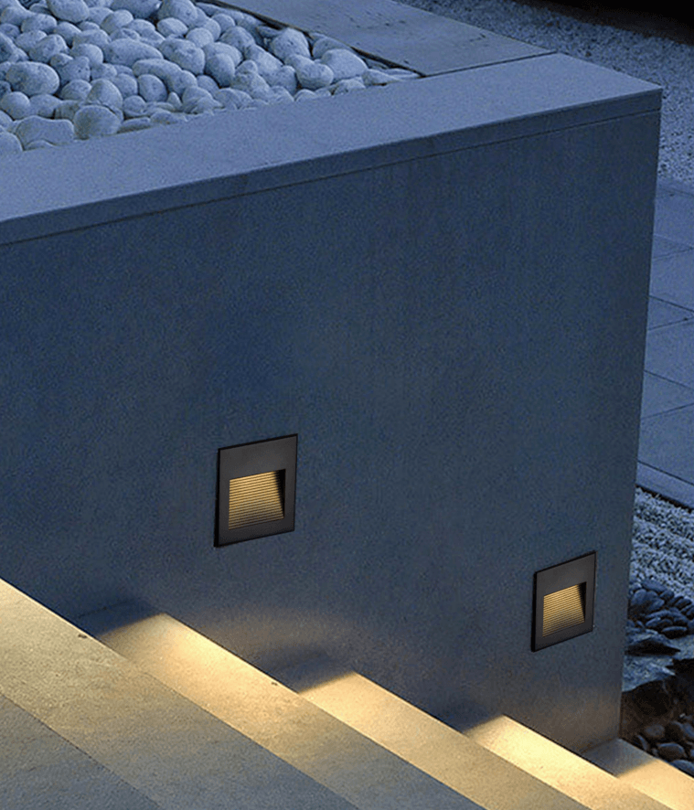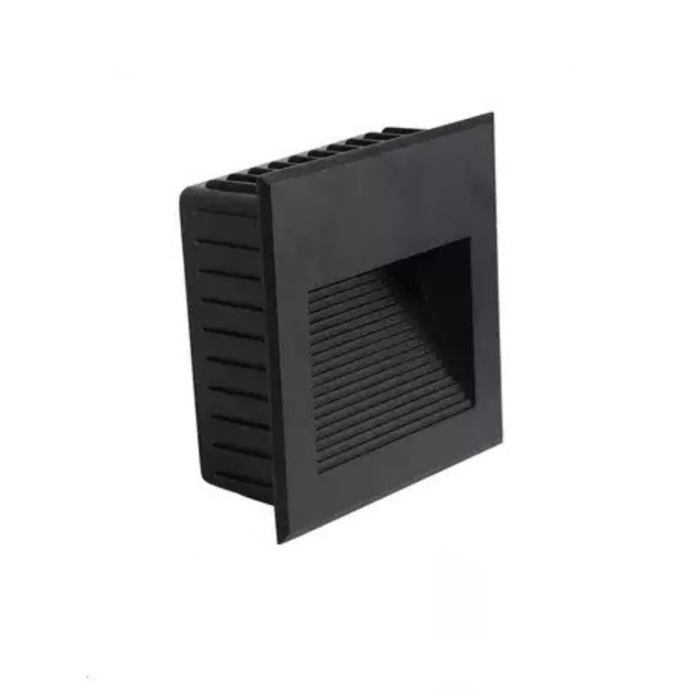 Luminaria de empotrar a pared con estructura de aluminio y acabado en color negro.