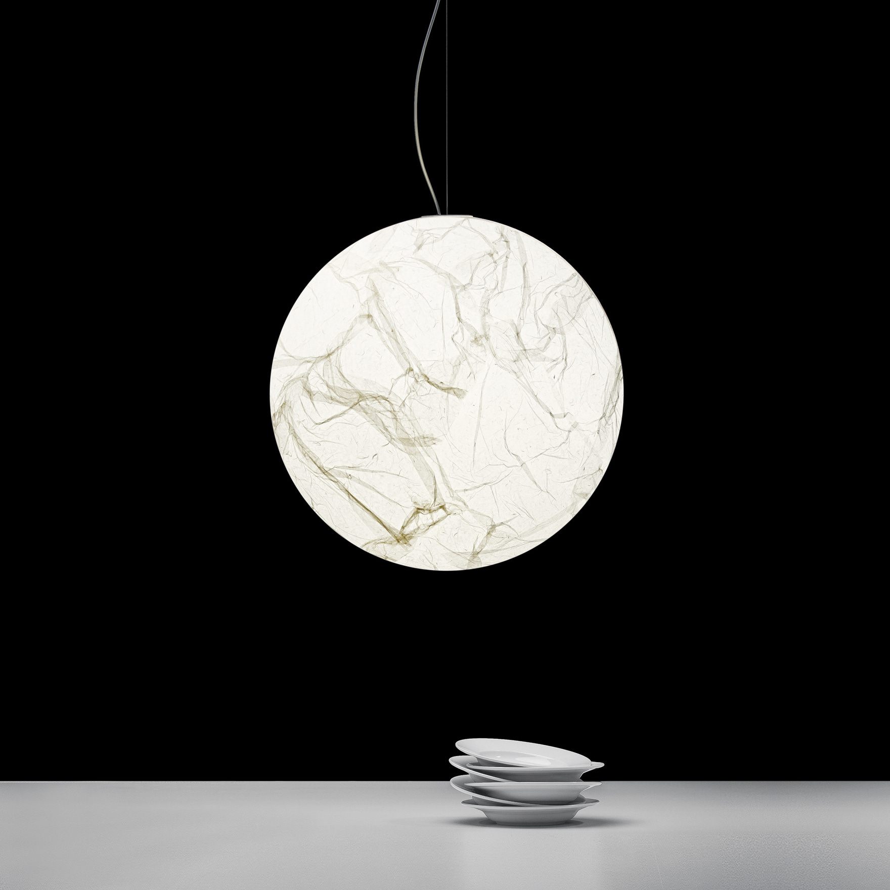 La superficie de papel japonés, hecho a mano, hace única cada pieza. Moon nace de un sueño, el de llevar la luna al interior de la casa.