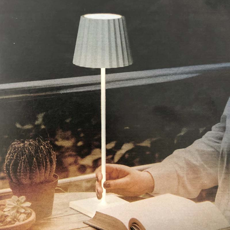 La lámpara portátil e inalámbrica Night, con acabado en blanco, tiene una clara vocación chill out. Funciona con una batería con cargador USB, con una duración de hasta 9 horas, lo que garantiza toda una noche de funcionamiento. Proporciona una luz tenue de gran confort visual y su sistema de encendido y apagado es táctil.