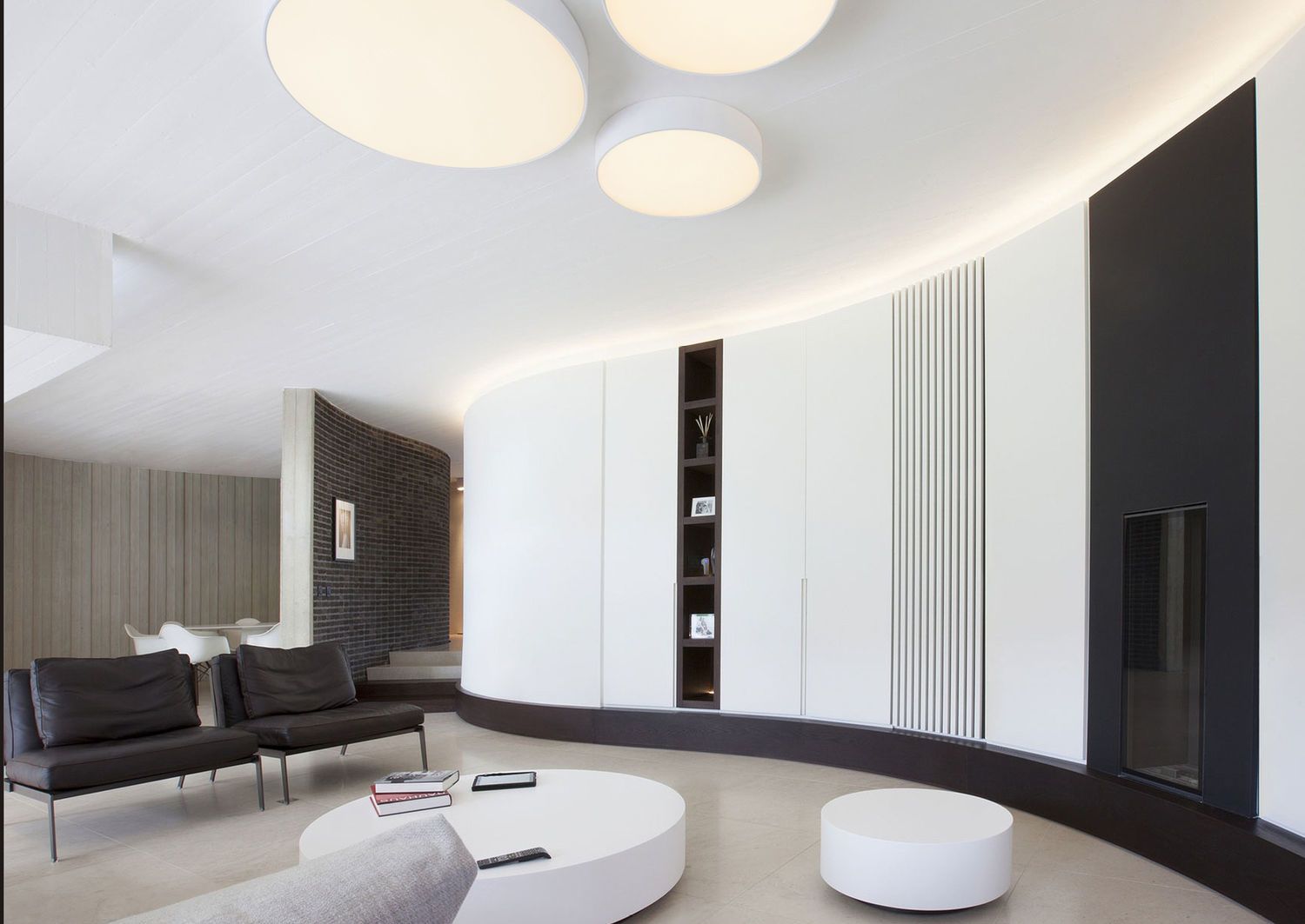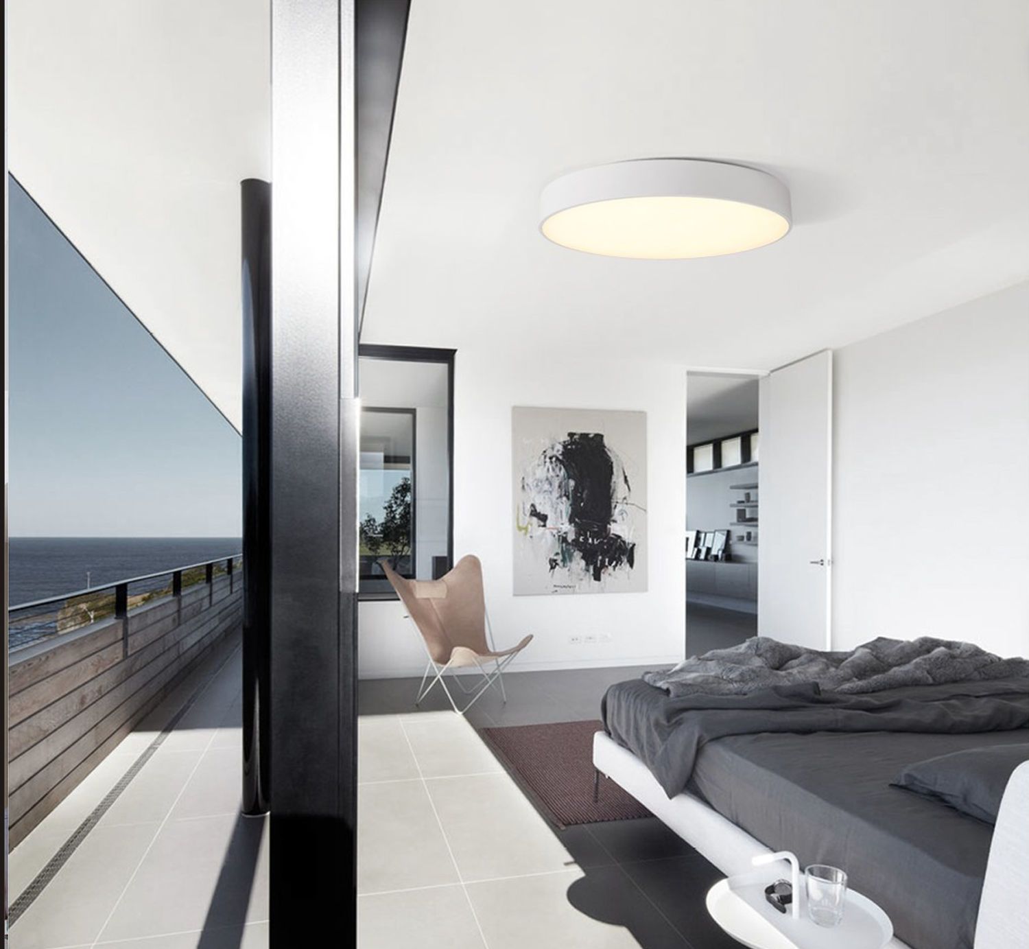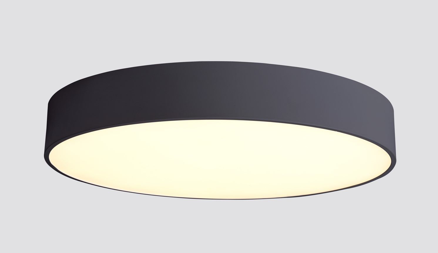 Luminaria moderna redonda con estructura de aluminio y acabado en negro.