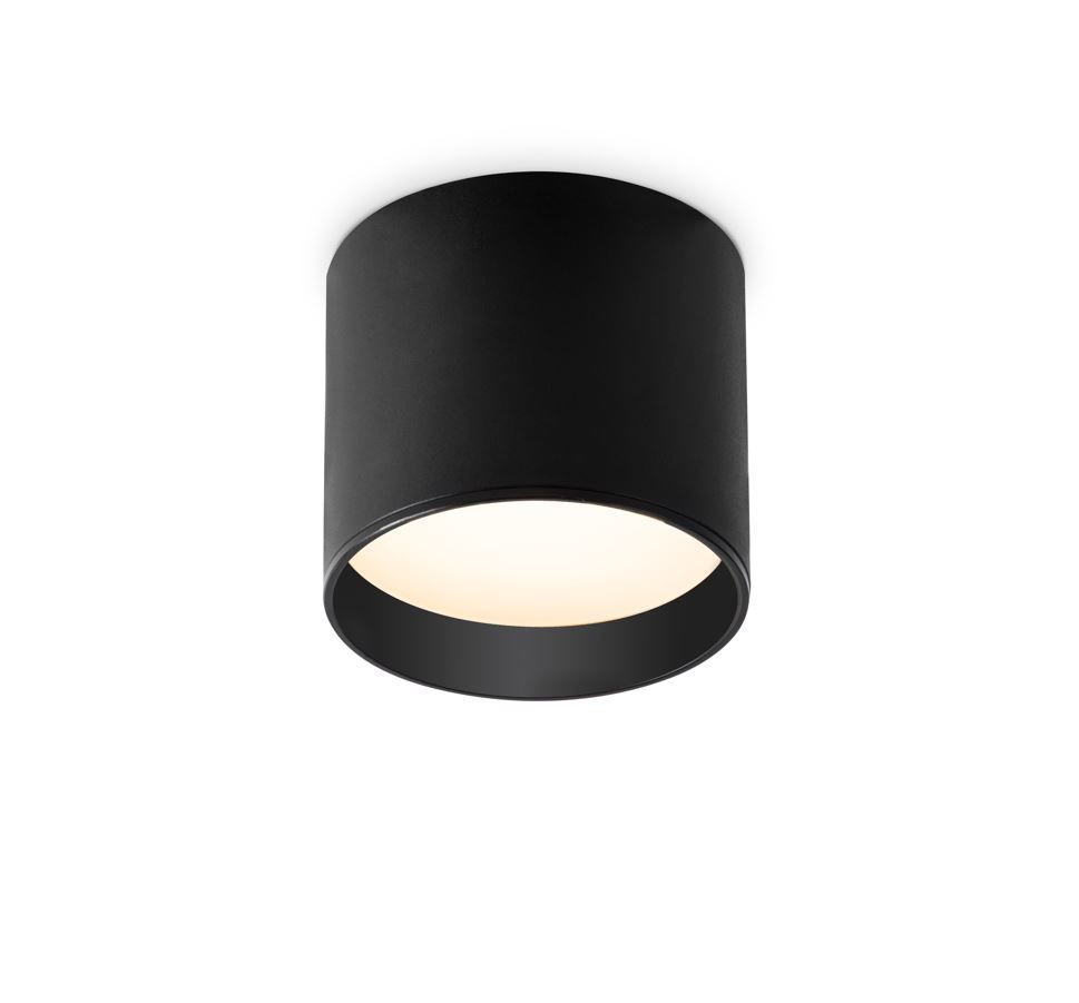 Luminaria Valec de forma tubular para adosar a techo. Su estructura es de aluminio con acabado en color negro. Diseño moderno que combina funcionalidad y estética.